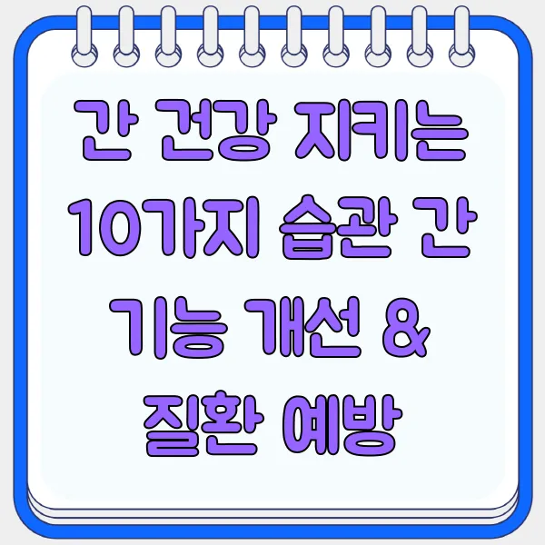 간 건강, 걱정되시죠? 잦은 회식, 스트레스, 불규칙한 생활 습관... 현대인의 간은 늘 지쳐있습니다. 간 기능 개선과 질환 예방을 위한 10가지 습관, 지금 바로 알아보고 실천해보세요! 건강한 간은 건강한 삶의 시작입니다! (간 건강, 간 기능 개선, 간 질환 예방, 지방간, 간경변)