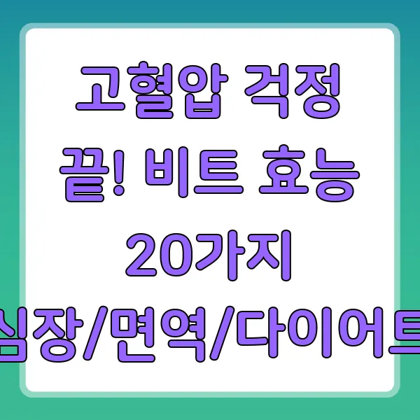 혹시 혈압 때문에 걱정이신가요? 아니면 면역력 증진이나 다이어트에 도움이 되는 슈퍼푸드를 찾고 계신가요? 루비처럼 영롱한 비트가 정답일지도 몰라요! 고혈압, 심장 건강, 다이어트까지! 비트의 놀라운 효능 20가지를 지금 바로 확인하세요! (고혈압, 비트 효능, 심장 건강, 면역력, 다이어트)