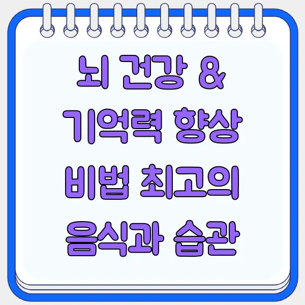 연어(오메가-3!), 블루베리(항산화제!), 브로콜리(비타민 K!), 계란(콜린!), 녹차(L-테아닌!)는 뇌 건강 어벤져스! 🤩 이 영양소들은 기억력, 집중력 향상에 시너지 효과 를 발휘합니다. 뉴런들이 어벤져스를 보며 환호하는 소리가 들리네요! 🙌