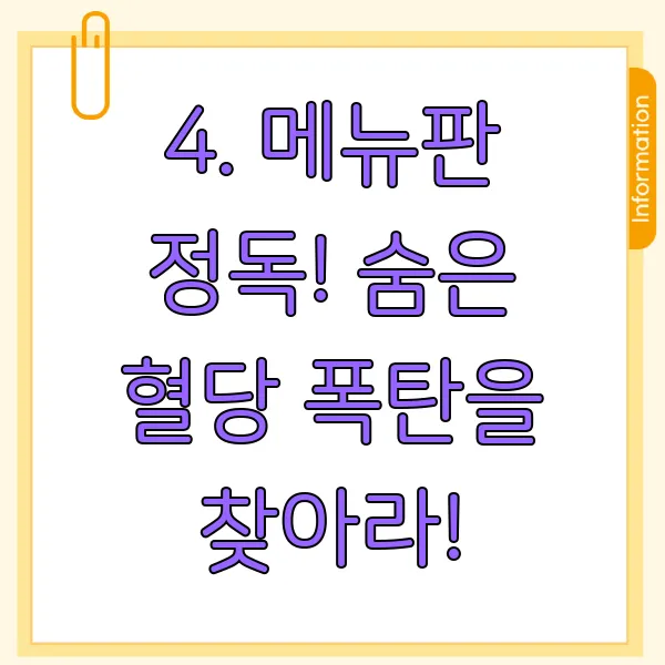 4. 메뉴판 정독! 숨은 혈당 폭탄을 찾아라! 🕵️