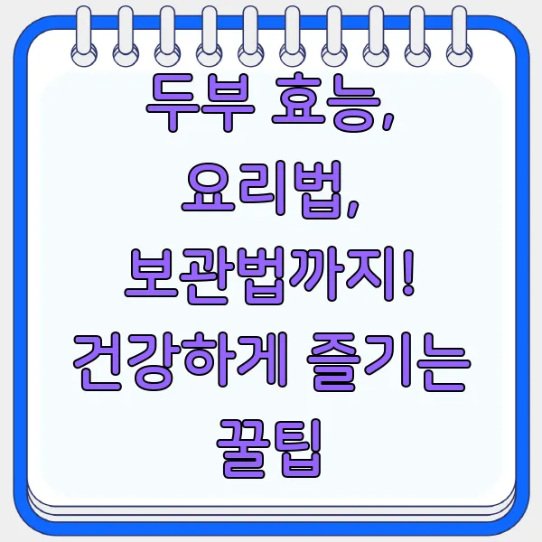 두부! 콩으로 만든 영양 만점 식품이죠! 단백질, 칼슘, 이소플라본까지?! 🤩 다이어트, 뼈 건강, 심혈관 질환 예방에도 좋다는데… 이거 완전 슈퍼푸드 아닌가요?! 두부 효능부터 활용법, 보관법까지 몽땅 알려드립니다! 두부 맛있게 먹고 건강도 챙기자구요! 😉