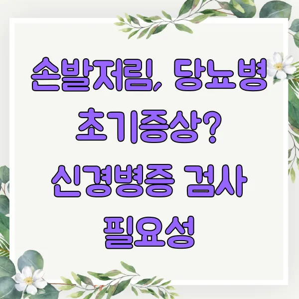 손발저림, 더 이상 가볍게 넘기지 마세요! 당뇨병 초기증상일 수도 있다는 사실, 꼭 기억하세요! 꾸준한 관리와 적극적인 검사만이 건강한 삶을 지키는 열쇠입니다! 🗝️ 당신의 건강, 응원합니다! 💕