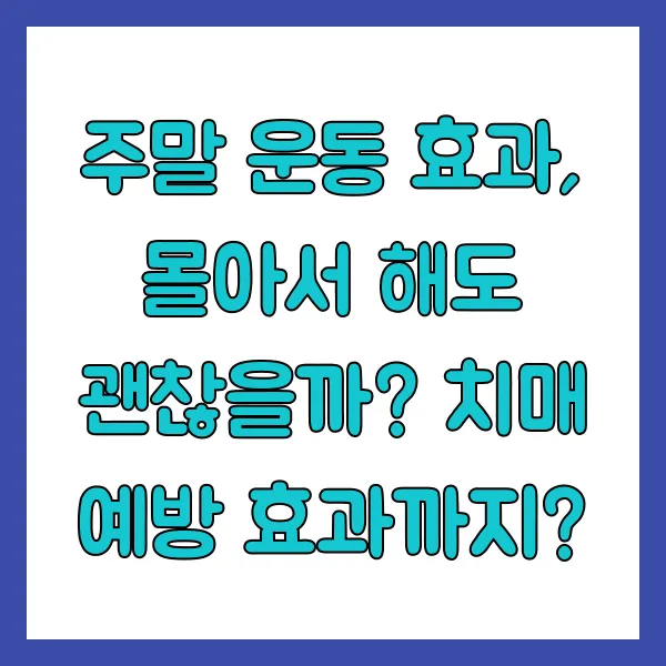 주말 운동, 효과 있을까요? 평일에 시간 내기 어려운 직장인들 주목! "주말 전사" 운동법, 치매와 뇌졸중 예방에 효과 있다는 놀라운 연구 결과가 나왔습니다! 주말에 몰아서 운동해도 괜찮을지, 뇌 건강과 치매 예방에 미치는 영향까지, 지금 바로 확인해보세요! #주말운동 #치매예방 #뇌건강 #주말전사 #운동효과