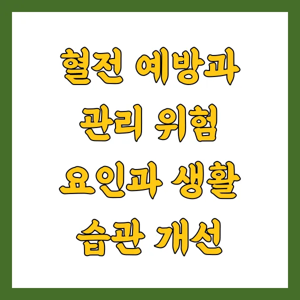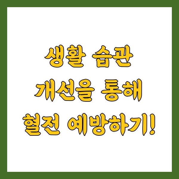 - 만성 질환 : 고혈압, 당뇨병, 고지혈증 등의 만성 질환은 혈관 내피세포를 손상시키고 혈전 생성을 촉진합니다. 꾸준한 약물 치료와 생활 습관 관리를 통해 만성 질환을 적극적으로 관리해야 합니다.